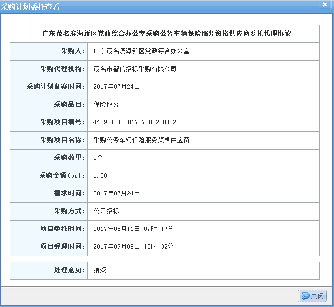茂名市智信招標采購有限公司 受 廣東茂名濱海新區黨政綜合辦公室的委托,對 采購公務車輛保險服務資格供應商 進行公開招標采購,歡迎符合資格條件的供應商投標。