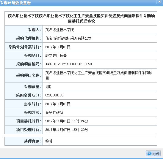 茂名職業技術學院化工生產安全技能實訓裝置及桌面推演軟件采購項目 |